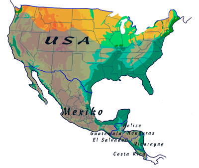 Etwa da ist das Verbreitungsgebiet der blauen Stachelleguane.