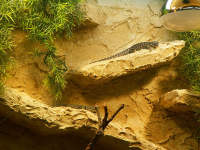 sonnen und verstecken können. Die Wände des Terrariums sollten daher felsig verkleidet sein. Das lässt sich
